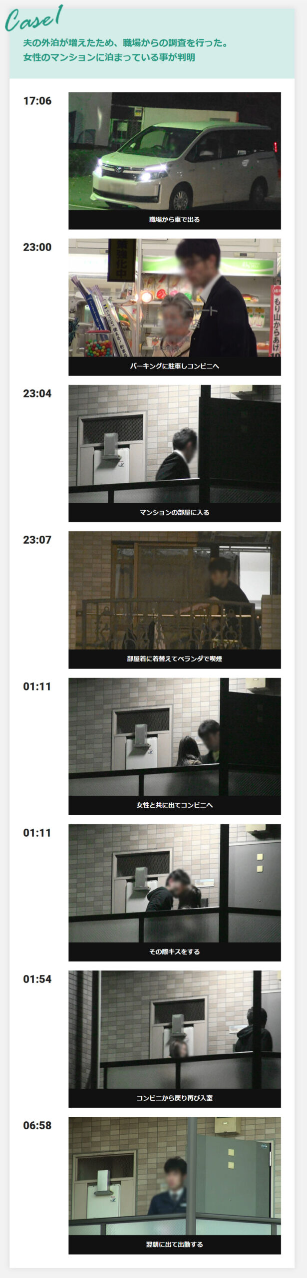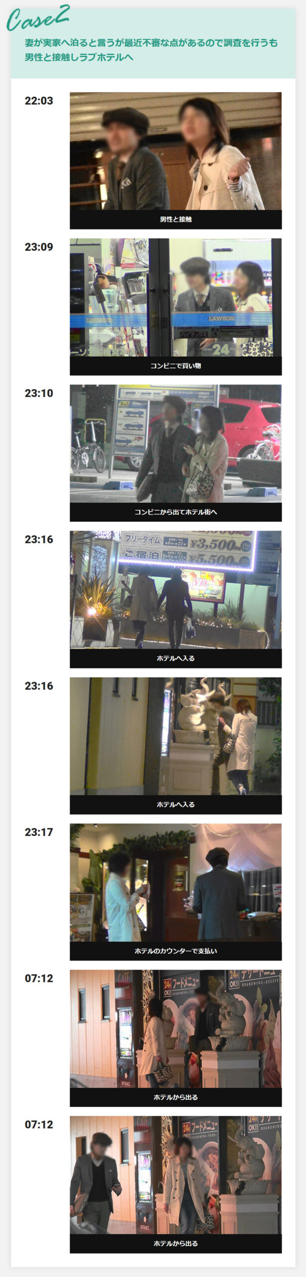 その方の状況に応じ、証拠を無駄なく収集していきます。どこまでの証拠を収集して、その証拠をどのように使用すれば一番良い結果になるかを相談員または当社提携弁護士が判断し、効率の良い調査を行っています。